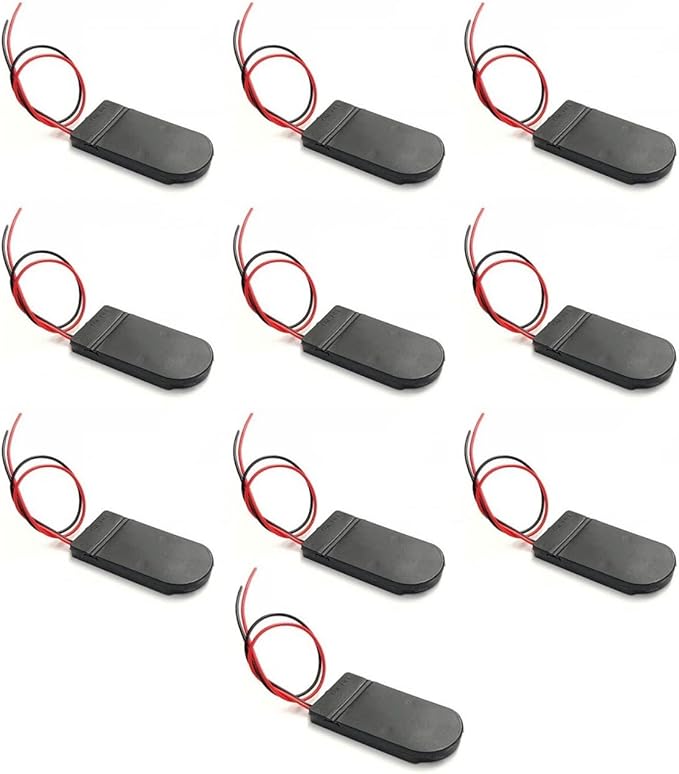JZK 10 Stück CR2032 Batteriehalter aus Kunststoff, 2 x 3 V Knopfzellen-Batteriehalter mit Drahtkabel, Ein-/Ausschalter, 2 x 3 V Batteriehalter mit Schalter